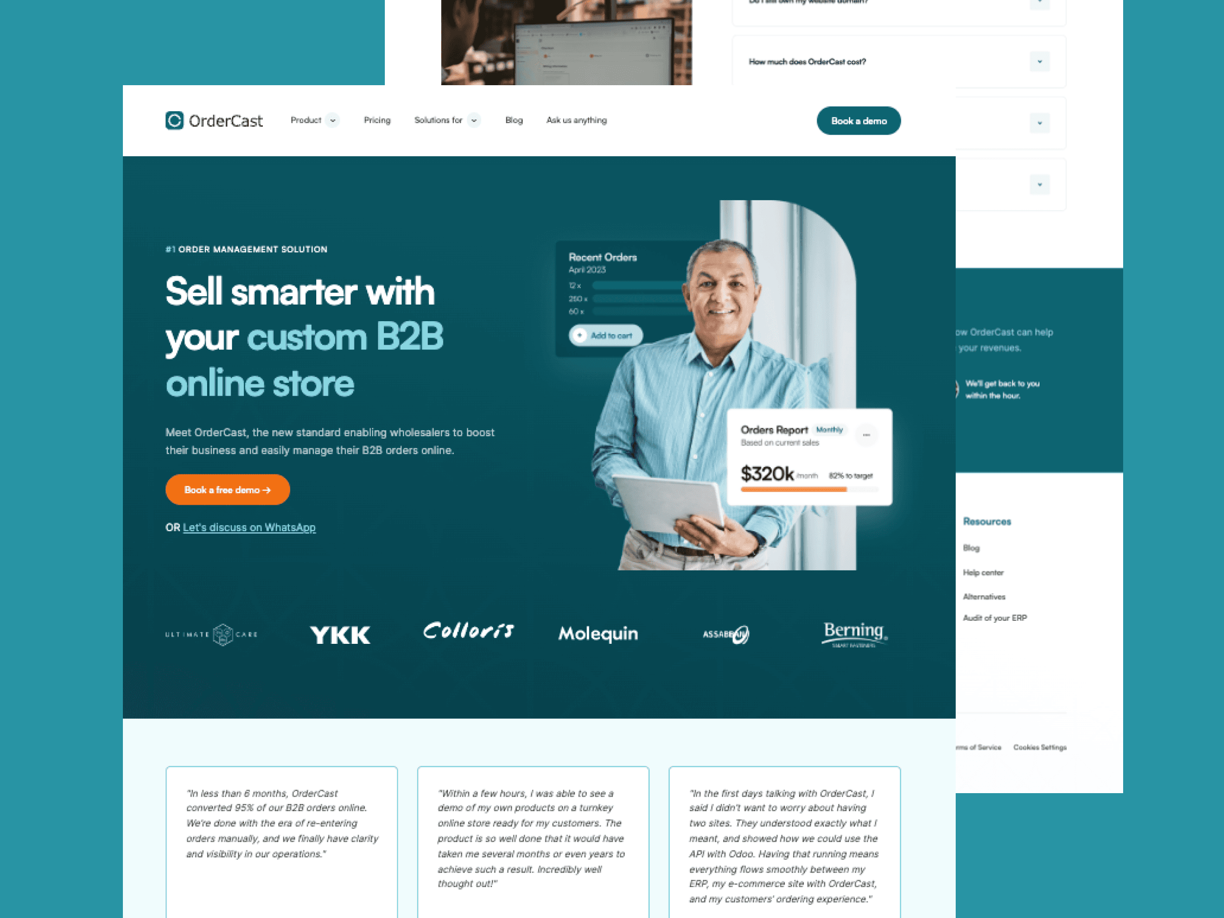 Nous avons repensé entièrement leur interface en créant une landing page claire, moderne et structurée autour des bénéfices concrets pour les grossistes. L’objectif : rassurer, expliquer rapidement la valeur ajoutée d’OrderCast, et encourager la prise de contact. Nous avons mis en avant leur mission – faire gagner du temps aux wholesalers – tout en valorisant leur expertise tech à travers un design épuré, professionnel et efficace.